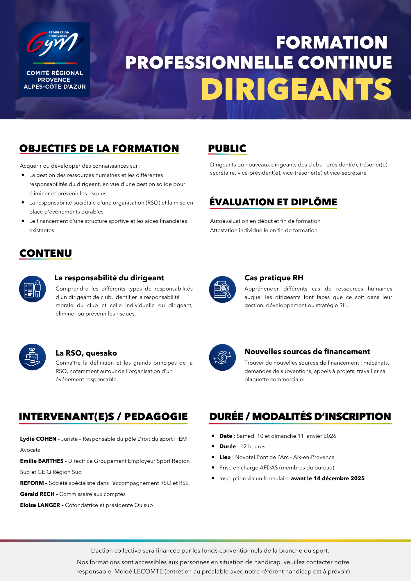 Vous trouverez les informations détaillées de nos FPC (dates, lien d’inscription avec délai, …) sur l’onglet évènement « Compétition/Formation » 1 mois avant la formation et le circulaire avec le lieu et la liste des cadres inscrits sont mis en ligne à ce même endroit 15 jours avant la formation.